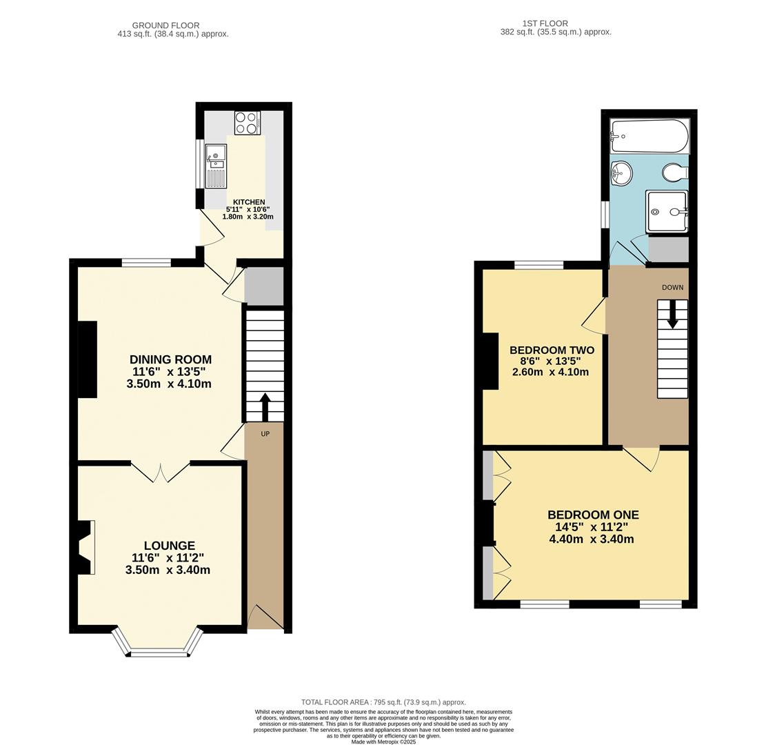 Upstairs, the first floor features two well-proportioned double bedrooms, both presented to a high standard, and a stylish four-piece house bathroom complete with bath and walk-in shower.
