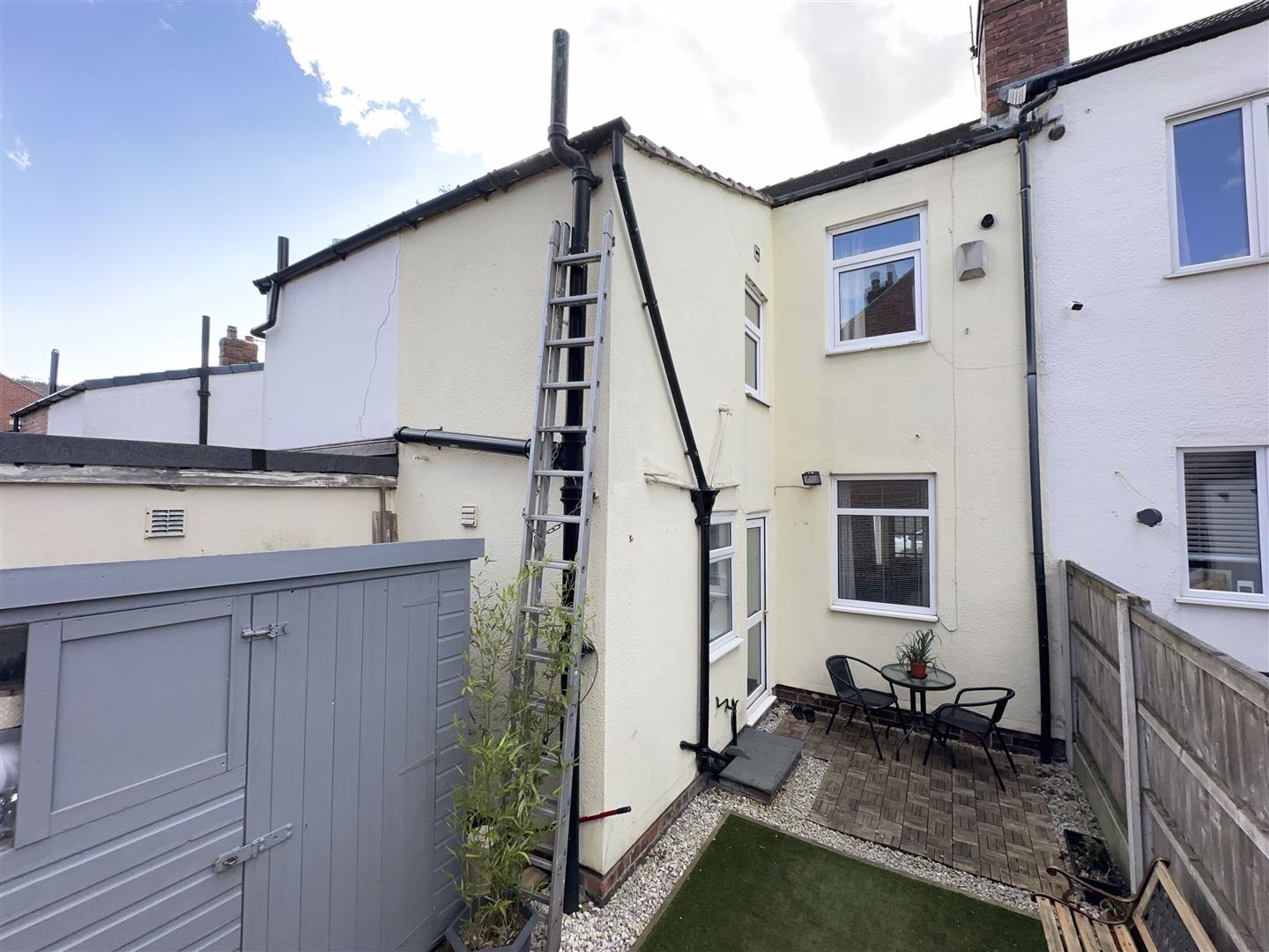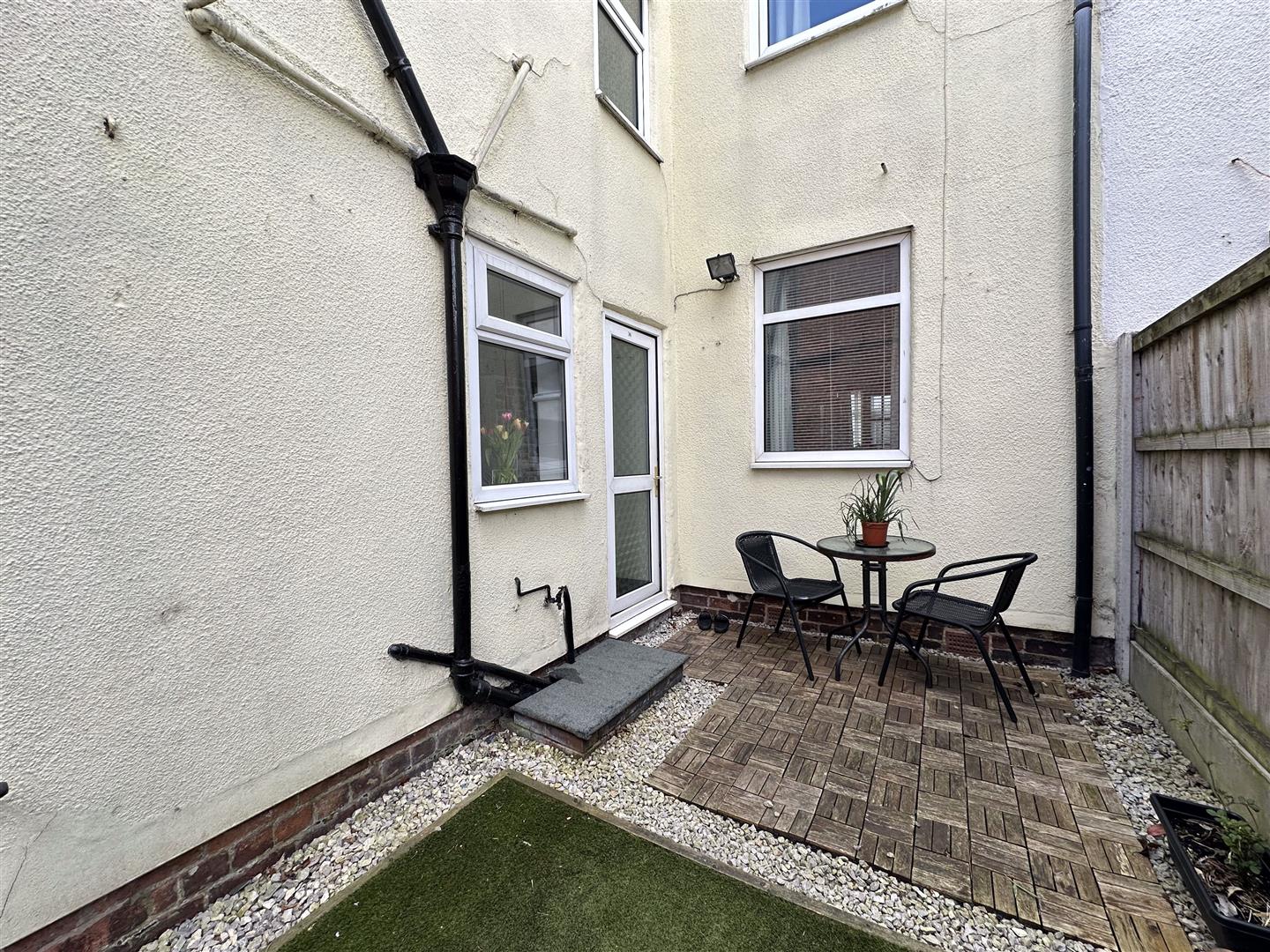 Front of the property has block paved walkway entered through a wrought iron gate leading to front door. Pebbled garden with bushes and shrubs to borders. Brick walling to boundaries. Rear courtyard style garden entered through double wrought iron gates. Comprising of a pebbled seating area, artificial lawn and a timber shed for storage. Outside tap and timber fencing to boundaries.