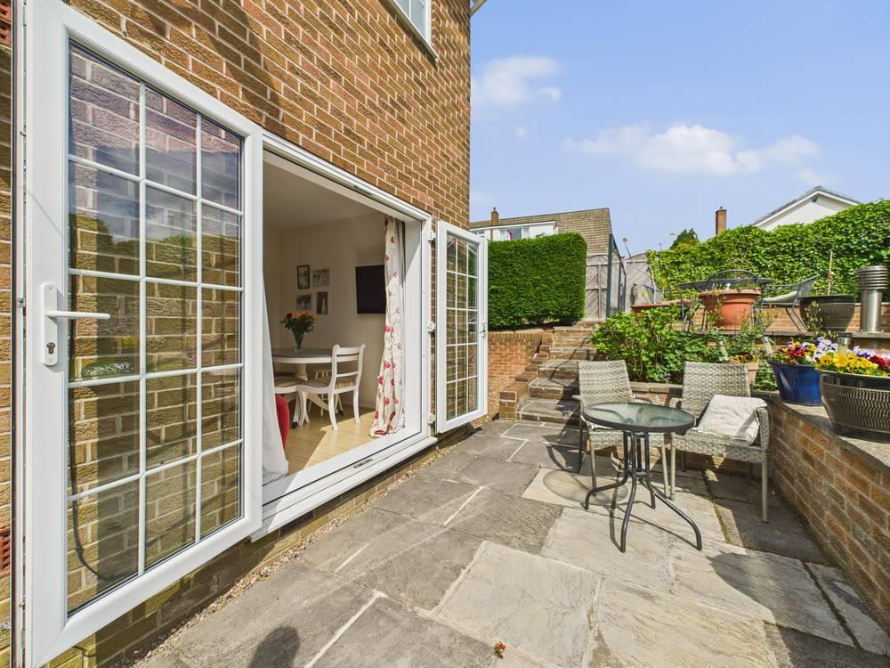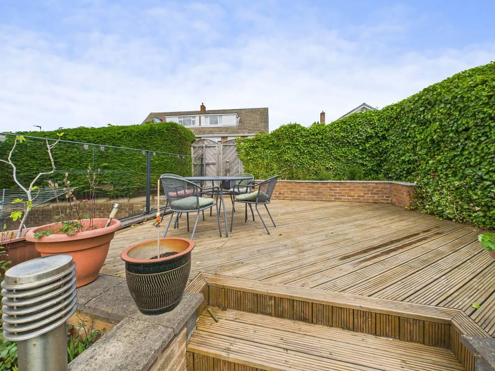 To the rear, there is an enclosed corner shaped garden. With lawn patio and decking area with a glass banister. There is a side pebble garden which is perfect for a privacy and access gate back to the front. Privacy hedges and shrubs. Access to the driveway and the garage.