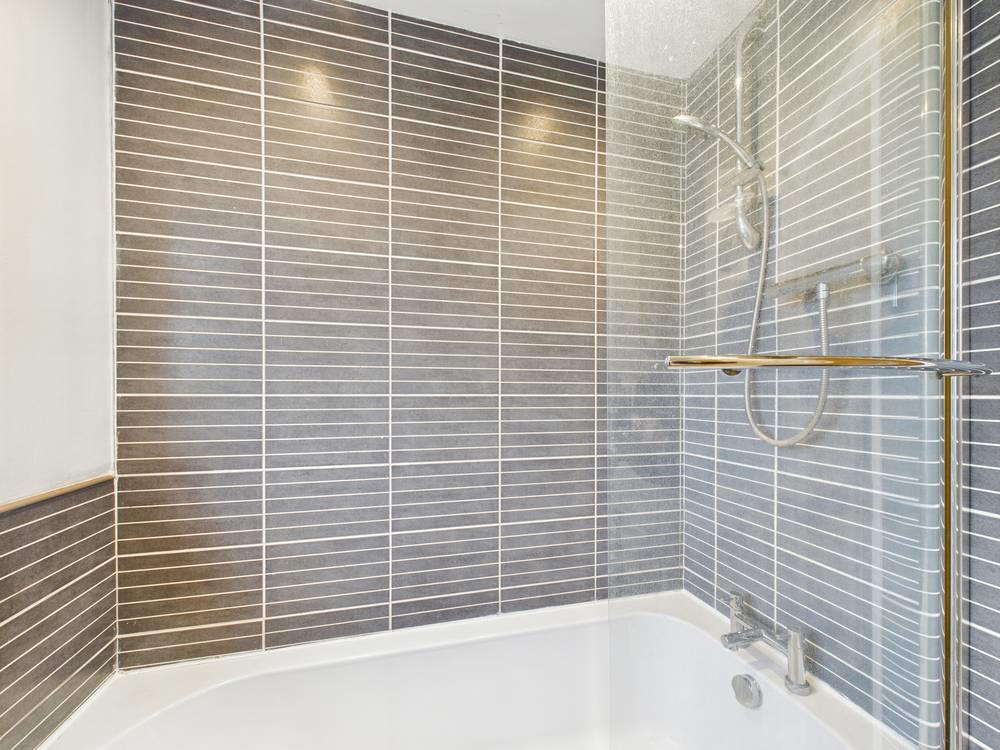 UPVC double glazed window to the rear elevation. Toilet with a low-level flush sink with mixer taps and a bath with a shower over. Spotlights taught the ceiling part tiling to the walls chrome heated towel radiator.